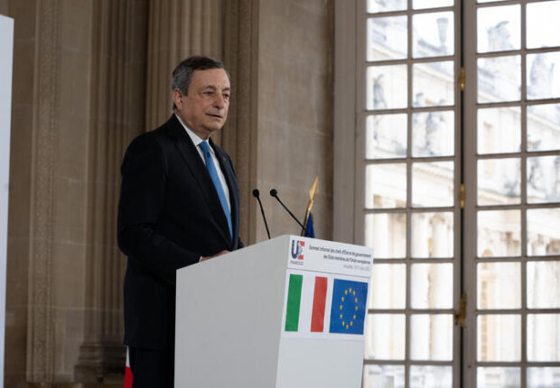 Draghi parla a Versailles: Putin non vuole la pace, ma il conflitto non si allargherà